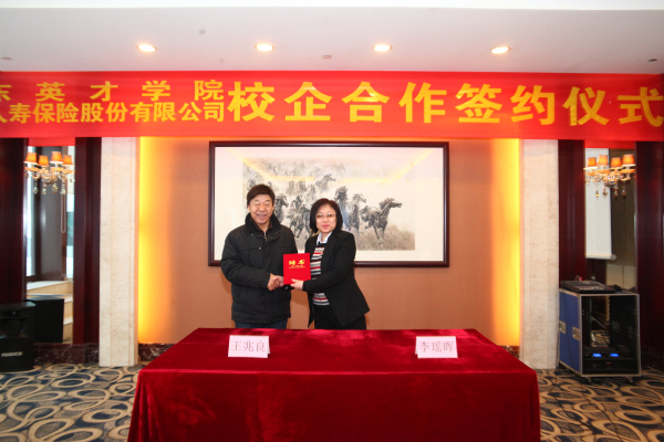 随后,学院副院长刘存刚博士,泰康人寿保险股份有限公司许国松总经理分别代表校方、企方签订校企合作协议;学院王兆良副院长为李瑶晖总同志颁发聘书,聘任她为经济管理学院特聘教授。