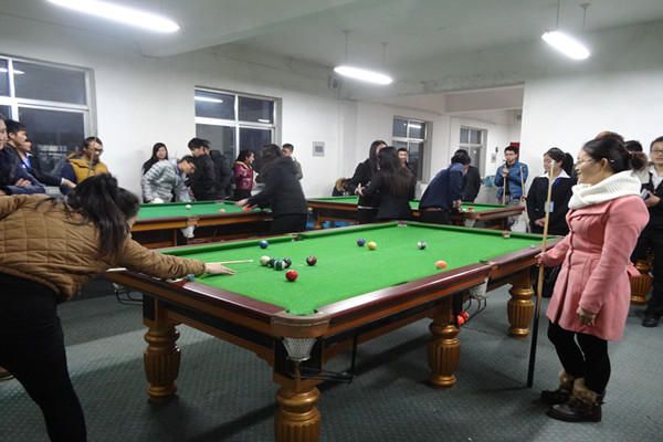 为了活跃校园气氛,增进学院同学间的友谊,丰富学生的课外生活,让同学们“走出宿舍、走下网络”,投入健康的体育活动中,经济管理学院外联部于12月26日在北校区商业街“365”健身房举行台球大赛初赛。学校的老师同学积极参与到其中。