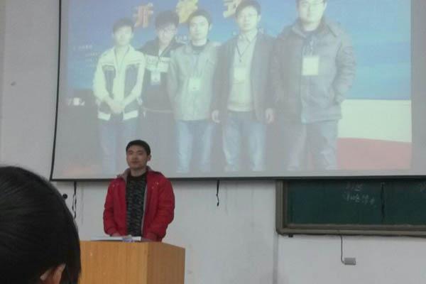 2014年3月12日12:00信息工程学院在综教北楼1009教室召开“科技竞赛人才培养基地成立暨全院动员”大会。此次报告介绍了计算机专业各类全国性的竞赛以及山东英才学院信息工程学院近年来取得的丰硕成果。出席本次报告的有信息工程学院行政副院长赵全华、实训中心的谢宏林主任、王甲琛主任以及往年在比赛中取得优异成绩的信管学子。