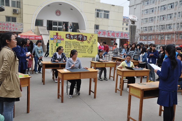 2014年3月28日中午在大学生活动中心门前广场,学前教育学院基层团委科技创新部举行了“我为汉字狂”的拼写大赛启动仪式及其现场模拟。参加此次启动仪式的有学前教育学院基层团委书记王坤丽,学生会主席张丰,基层团委常务副书记盖敏敏,学生会副主席孔维婷,还有学生会、基层团委的各个部长及团委四个部门的选手代表和科技创新部成员们。