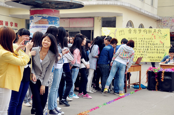 春暖花开正是青春咏唱的美好季节,为进一步推动学院文艺事业的蓬勃发展,激发同学们的青春活力,2014年3月26日下午4:30学前教育学院举办的“音为梦响新声代”歌手大赛海选活动在大学生活动中心广场隆重开幕。