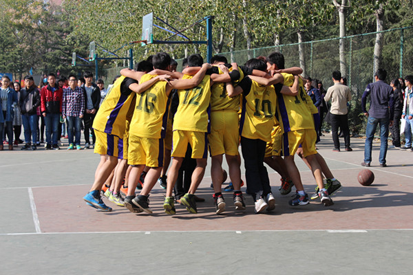 学校为了丰富广大同学的文体娱乐生活,充分发挥同学们的团队协作精神,增强同学们的凝聚力和自豪感,在山东英才学院南校区篮球场举行了“迎新杯”篮球比赛。随着时间推移,比赛已经进行到了半决赛,2014年11月4日,在篮球场上,商学院代表队和机械学制造及其自动化工程学院代表队展开半决赛的争夺