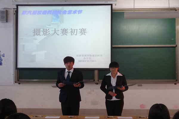 2014年11月4日中午,经济管理学院在B-502、504教室举办了摄影大赛初赛,本次大赛由基层团委办公室举办,2014级所有参赛人员班级,本次大赛特别邀请山东英才学院大学生记者团摄影部负责人徐凯良,2012年度摄影大赛一等奖获得者、策划室主任符鹏,办公室主任陈孝树,科技创新部副部长宋鑫波,宣传部副部长薛婧等作为本次大赛的评委嘉宾。