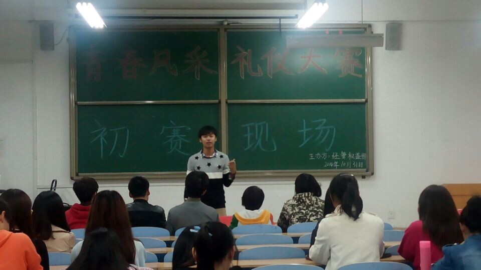 为丰富大学生的课余生活,展示当代大学生的个性风采,打造一批闪亮的校园礼仪之星,2014年10月31日下午五时,以经济管理学院学生会权益部承办的第六届科技文化艺术节青春礼仪风采大赛在教学楼B-106拉开了帷幕。出席本次活动的有经济管理学院基层团委、学生会办公室副主任韩国栋、杨鑫,文艺部副部长韩佩锦等五位评委。