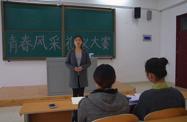 为了推动我院的礼仪知识教育,传播礼仪之风,培养和谐校园文明风尚,展现我校学生良好的文明礼仪风采,11月1日午12时,由学前教育学院学生会权益部主办的青春风采礼仪大赛复赛在学前教育学院实训教学楼6012举行。学前教育学院学生会副主席渠姗姗、权益部部长王棋出席并担任本场比赛的评委。