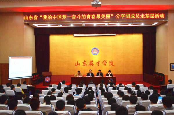4月10日上午,共青团山东省委组建的“我的中国梦――奋斗的青春最美丽”分享团在山东青年政治学院宣传部副部长蒋涛涛的陪同下来到山东英才学院开展了分享团成员走基层活动。山东英才学院学工部部长、团委书记龙新良,学工部副部长李寿杰出席活动,分享会由团委副书记王鹏飞主持。我院组织学生参加了本次分享会。
