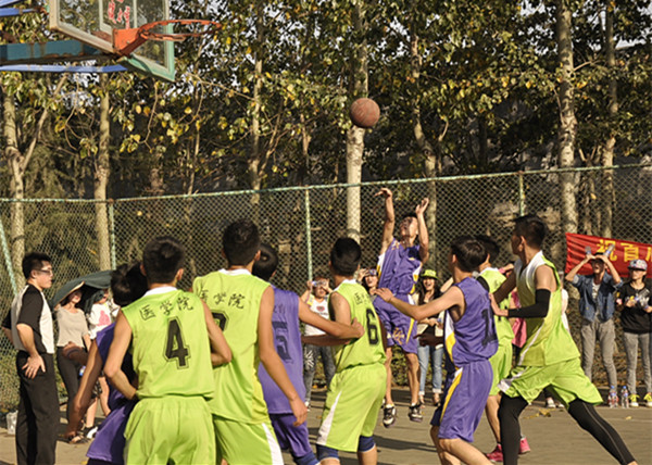 10月24日14:30,学前教育学院参加了在篮球场举行,由山东英才学院主办的第十三届“迎新杯”篮球赛。这是学前教育学院参加的第三场比赛,是学生男篮参加的第一场比赛,赛前大家都充满信心。本次比赛是学前男篮对阵医学院男篮,学前身着紫色球衣,医学院为绿色球衣。