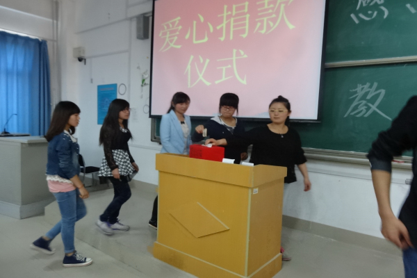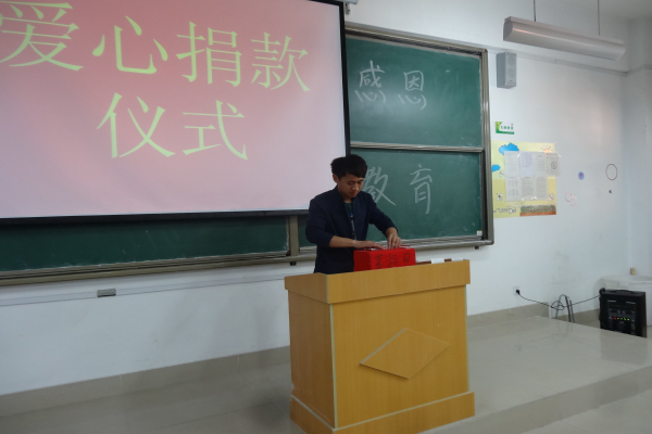 活动进行到最后一个环节――爱心捐款仪式。接受捐款的是财管二班的张同学,她的家在前几天因为邻居家着火而受到牵连,现在家里几乎一无所有。很多同学自发地走上讲台为张同学捐款。张腾老师代表经济管理学院行政院长王广柱为张同学也提供捐款。感恩是一种文化素养,是一种思想境界,是一种生活态度,更是一种社会责任。通过本次感恩教育活动,使同学们对感恩有了新的认识,并深入思考,在日后不断完善自己,做一个懂得感恩的人。