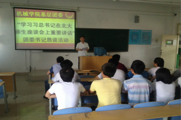 为积极响应学院号召,正确引导广大团学干部对社会主义核心价值观体系的认识,2014年5月23日上午11:40机械学院基层团委副书记在实训南楼4012召开团委书记恳谈会,参加会议的有机械学院基层团委刘阁书记、各副书记、机械学院学生会主席团成员及各部门部长。本次会议由刘阁书记主持召开。