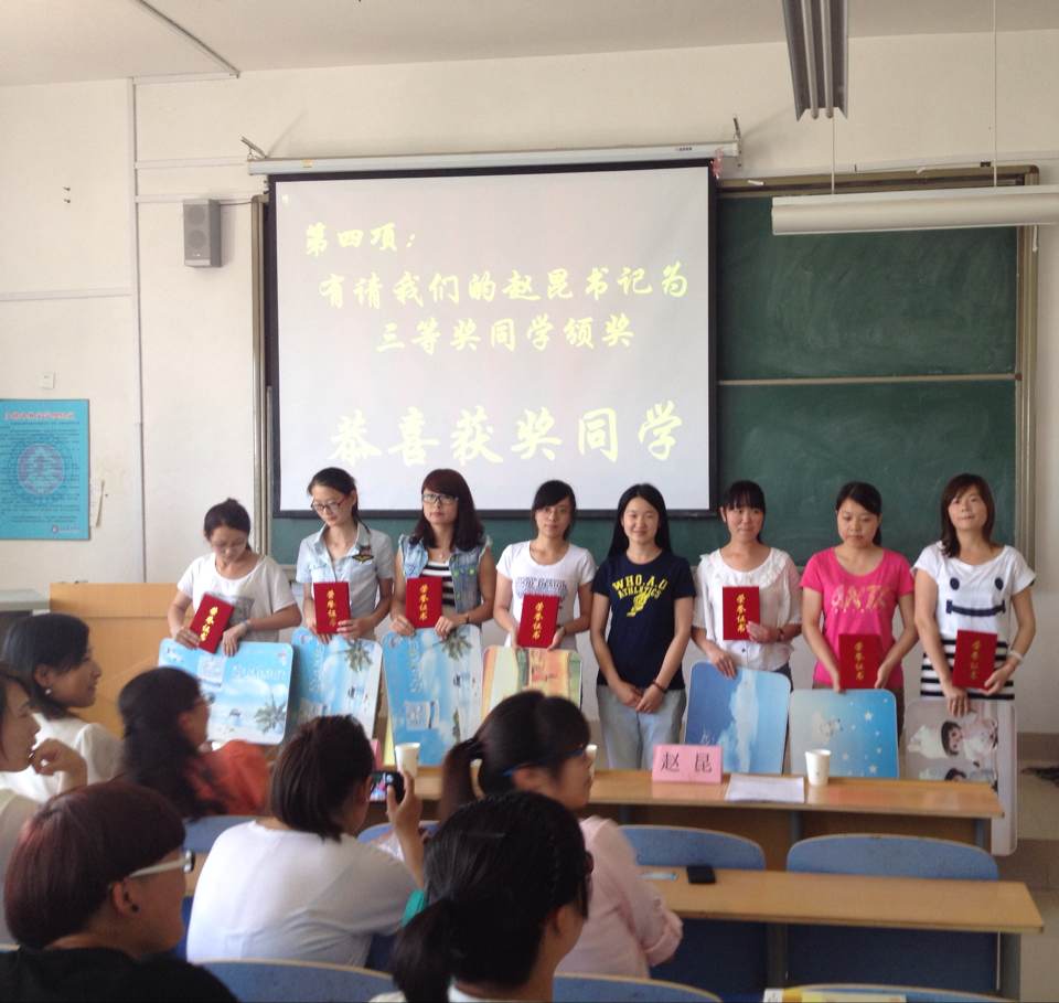 典礼在肃穆的国歌下拉开帷幕,与会人员跟随PPT回顾了大赛的整个历程,之后,经济管理学院基层团委赵昆书记隆重宣读关于本次大赛获奖先进个人的表彰文件。经过层层角逐,共有16名同学荣获佳绩。其中,胡黎明、马鑫锐荣获一等奖,李会玲等6名同学荣获二等奖,乔卉郁等8名同学荣获三等奖。在颁奖仪式上,王广柱院长、李众宜院长、赵昆书记分别为一等奖、二等奖、三等奖获奖同学颁发荣誉证书和奖品。颁奖典礼最后,李院长做指导性总结,在总结中,李院长首先转达了刘超院长对本次大赛的重视,然后向在参与和筹备本次比赛的各位老师和同学们表示感谢,最后李院长提出像这样有意义的比赛应该多办,办好,让更多的同学都可以参与进来,发挥专长。鼓励获奖的同学戒骄戒躁,再接再厉。