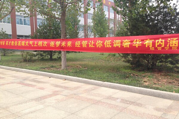 经济管理学院按照学校安排,积极营造迎新生氛围,悬挂“激扬青春,英才教你高端大气上档次,放飞梦想,经管教你低调奢华有内涵”等条幅,制作迎新板报,教学楼辅导员办公室门口写有“欢迎大家加入经管大家庭”等标语,让新生感受到经管大家庭的温暖。