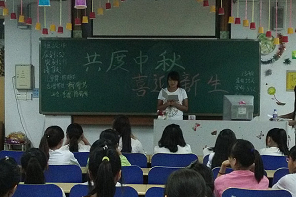 学校刚开学不久,同学们便迎来了中秋节。为了让同学们感受到中秋文化的源远流长,了解到中秋特有的风俗习惯,基层团委组织在此之际召开了此次主题班会。开始,主持人带动气氛,同学们积极互动。班会以王菲的一曲《但愿人长久》拉开序幕,利用古词曲,使现场充满古代的纯真韵味。接着,主题班会就给了来自不同地区的同学们一个展示家乡特色的平台,他们对家乡的中秋节进行了生动的描述,这就使得还稍显陌生的同学们的关系更近一步,增强了大家对班会的兴趣,升华了班会的主题。身在外乡的学子,由衷感受到了中秋前夕校园里的温暖的气氛,而不再有寄身外乡的孤独。在班会进行的最后阶段,主持人向大家提议,在现场说出自己想对远在他方的家人的思念与祝福。同学们表现积极,现场情景感人肺腑,充满了大家对亲人的思念之情。班会结束,同学们领到学校分发的月饼和巧克力后都露出由衷的笑颜。