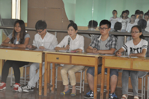 为丰富大学生生活,营造健康向上的学院文化,学前教育学院于2014年9月4日下午四点三十分在A教学楼七楼举行了2014级新生合唱比赛初赛。本次活动由学生会文艺部承办,基层团委书记王坤丽,学生会主席张丰,副主席范江涵、孔维婷及文艺部部长渠珊珊作为评委出席本次比赛。