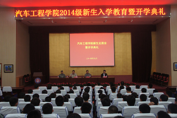同样明媚的金秋,同样丰收的季节,同样激情的岁月,在这清爽的季节里,汽车工程学院师生欢聚一堂,于2014年9月16日在学术报告厅举行2014级新生入学教育暨开学典礼。汽车工程学院院长曹新忠教授、教学副院长刘艾清博士、行政副院长曹福华同志、济南军区防化团王教官出席典礼并在主席台前就座,汽车工程学院全体教职员工和2014级全体新生参加了本次活动。开学典礼由行政副院长曹福华同志主持。