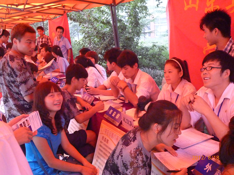 2012年8月19日,学生会纳新工作的第二天开始了。学生会纳新工作人员上午7点开始在学生会办公室准时集合,把工作时所需的必备品都搬到了工作地点之后,大家才去吃早饭。