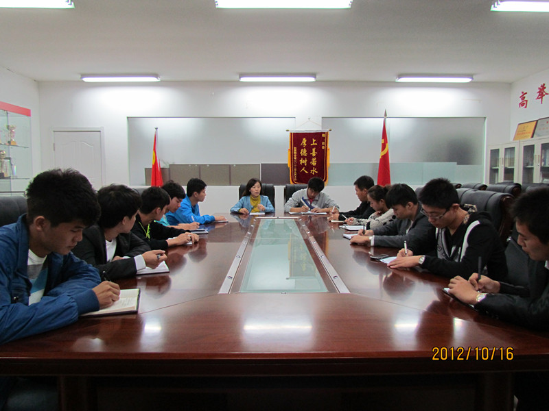 2012年10月16日 中午12:00整,于英才学院团委办公室召开主席团会议,出席此次会议的有负责人王东升、校学生会主席以及各二级学院学生会主席。