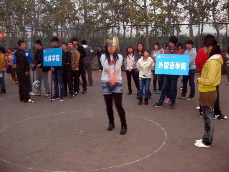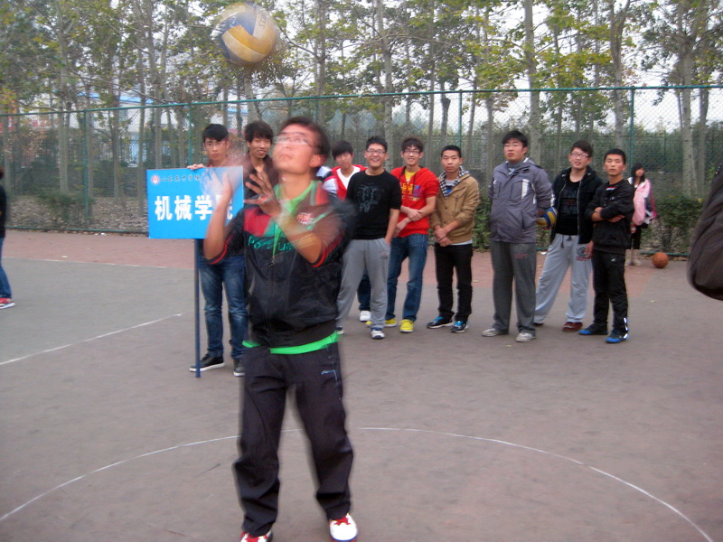比赛分四个赛区同时进行,开始前先由各二级学院的负责人抽签决定比赛场地与出场次序,接着,运动员一个接一个的上场,在直径为三米的圆圈内一展排球垫球技巧,使球像自己手中的玩物随意跳动,新的记录一次次被打破,在场观众无不为之喝彩加油。