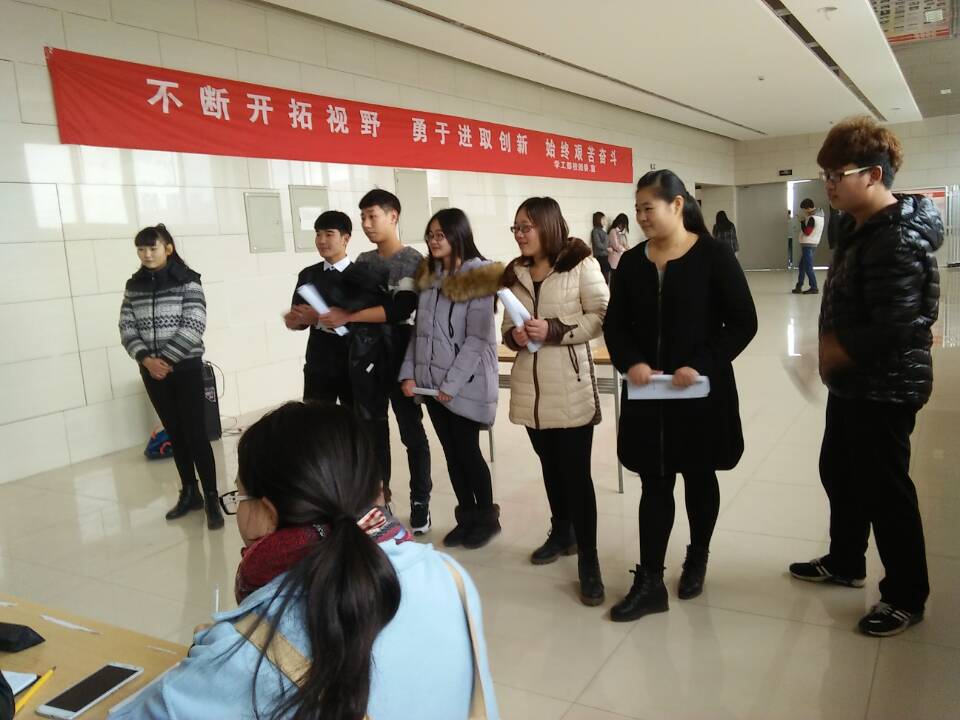 山东英才学院北校区社团联合理事会于2015年12月7日中午11:30分在大学生活动中心四楼大厅举行了社团文化活动月闭幕式节目的第一次海选。出席本次节目海选并担任评委的有社团联合理事会副主席兼文艺部部长鲁洋、宣传部部长王新月、资产部部长张绍华,参加此次海选的节目主要是社团联合理事会各部门和各个社团所推选出的精彩节目。