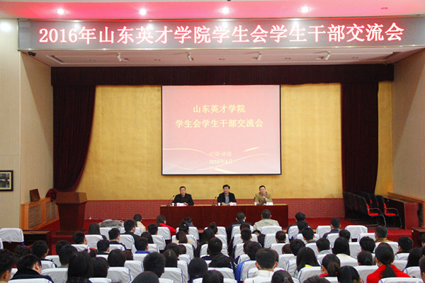 细风微醺,春意盎然。在这青春向上,阳光明媚的季节里,“2016年山东英才学院学生会学生干部交流会”于2016年3月15日中午在学术报告厅召开。学院张宗胜副院长,教育教学部龙新良副部长,王鹏飞副书记加了此次会议。
