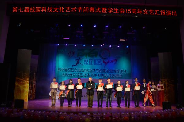 在恰逢2015年也是山东英才学院学生会自成立以来走过的第15个年头之际。2015年12月14日18点,山东英才学院第七届校园科技文化艺术节闭幕式暨学生会15周年文艺汇报演出在大学生活动中心圆满举行。本次晚会,特邀学院副院长李崇银教授,党委副书记、副院长张宗盛教授,副院长周忠教授出席本场晚会,各二级学院行政副院长、基层团委书记、老师以及来自全校1000余名学生代表也积极热情地来到晚会现场。