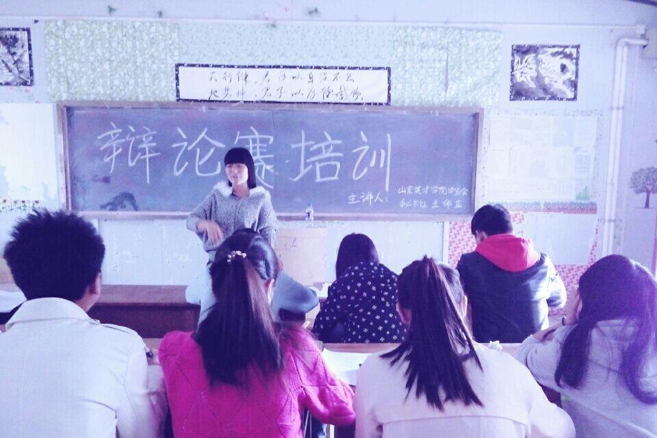 为了丰富校园文化生活,提高同学们学习的积极性,山东英才学院青春交流协会于2014年11月2日中午12:00在教学板房开展新闻稿及辩论赛的培训。王艺飞副社长特意邀请校学生会秘书处13级骨干王伟亚出席本次会议,此外还有协会部分骨干成员。