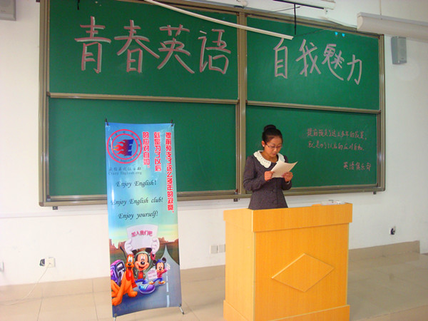 2012年11月9日中午12点北校区英语俱乐部举办的主题为“青春英语,自我魅力”英语口语大赛初赛经过一系列充分筹备工作之后,在北校区教学楼B-104多媒体教室正式拉开帷幕。