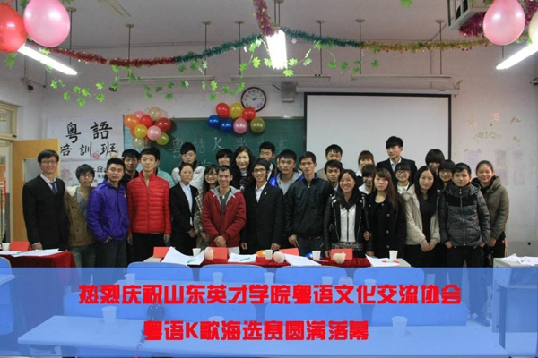 2013年11月24日,山东英才学院粤语文化交流协会在c楼3003教室里进行了粤语k歌大赛海选隆重邀请了粤语文化交流协会指导老师卢梅芳老师、社联主席陈坤等出席了本次大赛。