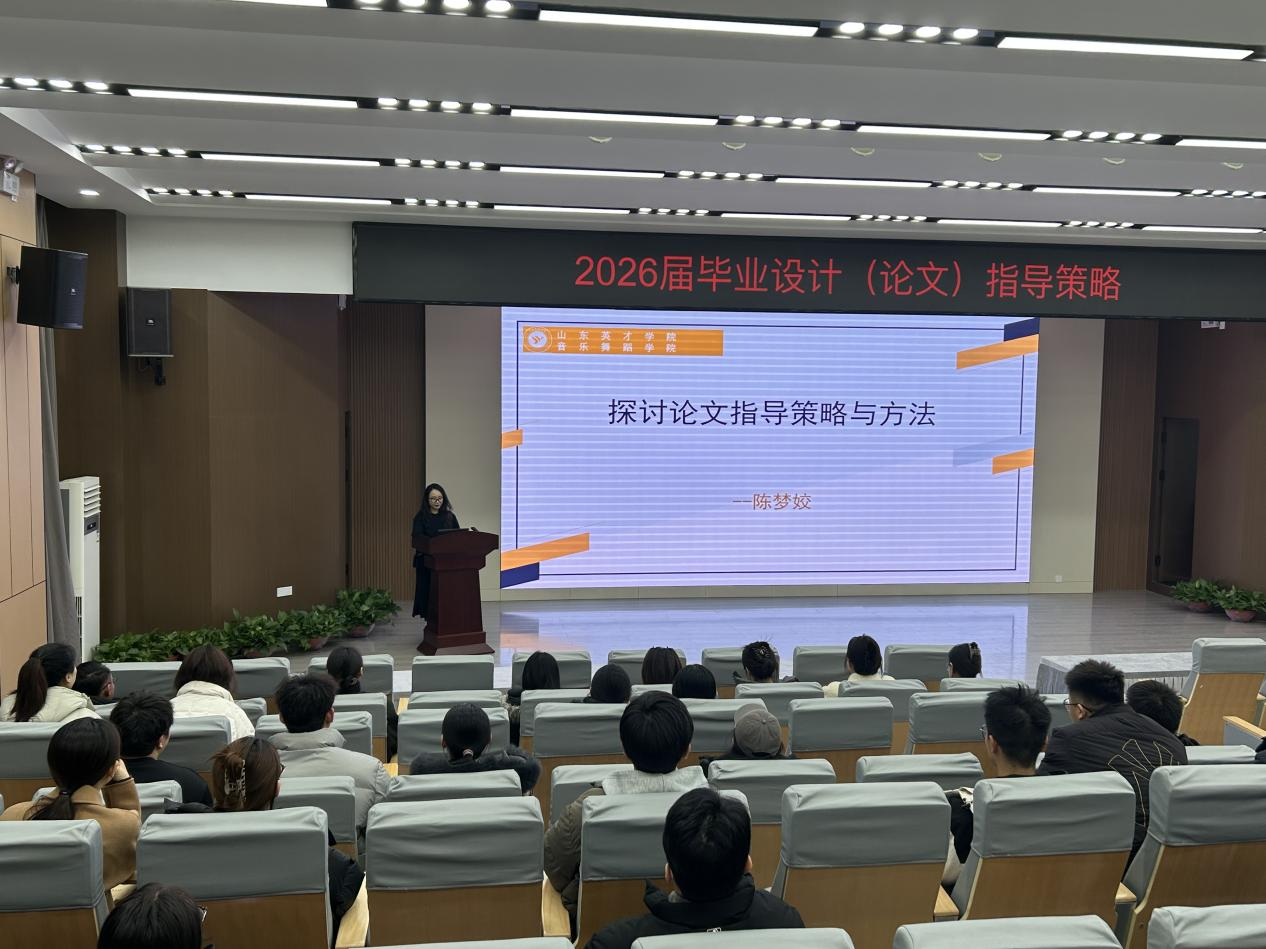为切实提升2026届毕业设计(论文)质量,明确指导教师工作方向与核心要点,确保毕业设计(论文)指导工作科学有序开展,12月9日,音乐舞蹈学院在知行楼报告厅隆重召开2026届毕业设计(论文)指导策略专题会议。2026届全体毕业论文指导老师悉数参会,会议由陈梦姣老师主讲。