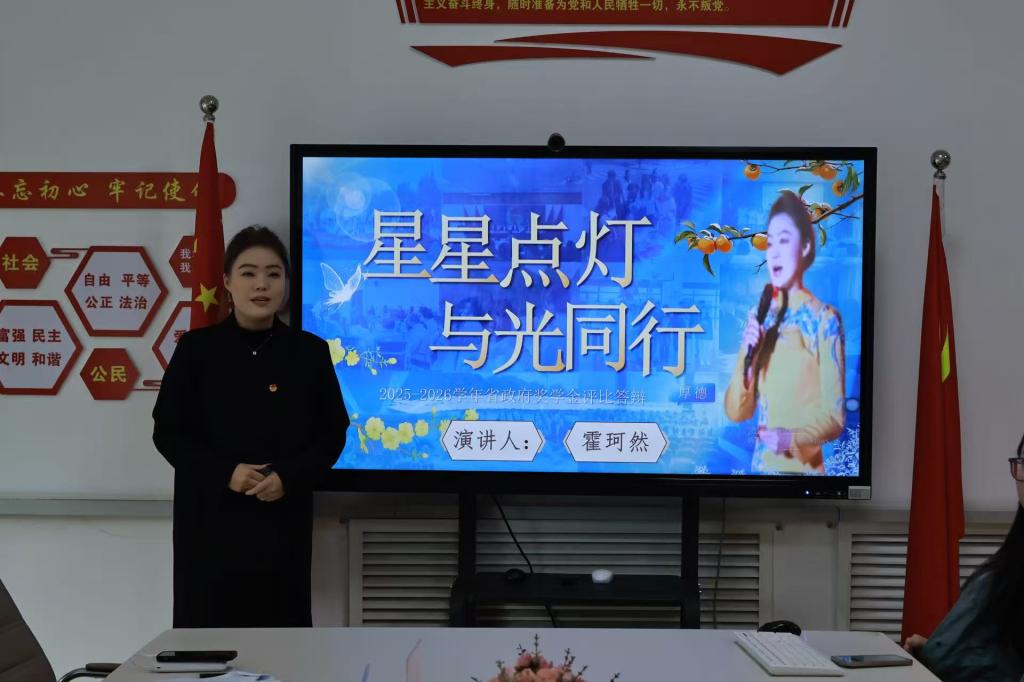 学院党总支书记、院长王琪瑶对候选学子予以肯定,并围绕两点核心方向提出期许:一是强调本次评选全程秉持公正严谨的原则,严守评选标准与流程,确保结果公平公正,彰显评选的严肃性与权威性;二是希望学子深刻领会奖学金的核心意义——既要以获奖学子为榜样,树立“见贤思齐”的进取意识,在全院营造积极向上的优良学风;更要铭记这份荣誉背后国家、社会与政府的关怀,心怀感恩、砥砺前行,以扎实的专业素养与昂扬风貌,不负栽培、不负韶华。