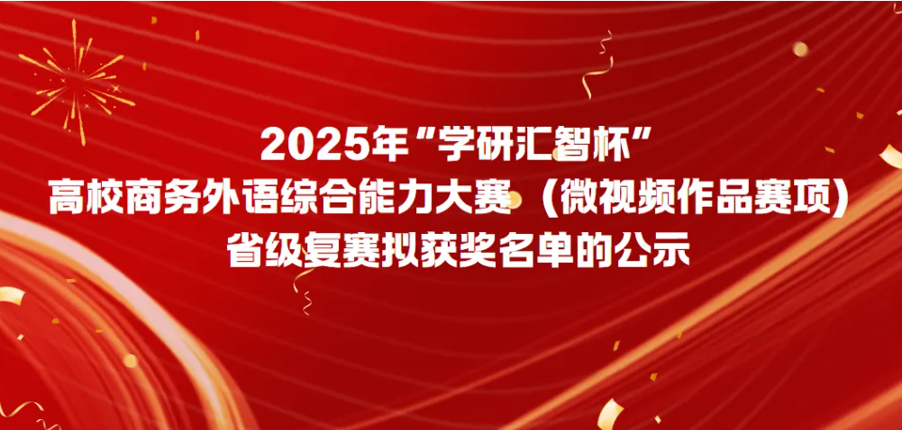 近日,2025年“学研汇智杯”高校商务外语综合能力大赛(微视频作品赛项)省级复赛圆满落幕。历经短视频作品专业评比与线上投票两大环节,并经专家评审团严格审定,我院2023级本科商务英语专业谭雅文、董俊超、陈春燕、张锦媛、孔祥任、蒋雨航组成的参赛团队,在马岩、崔丹老师的悉心指导下,凭借优质作品荣获山东赛区二等奖,为学校赢得荣誉!