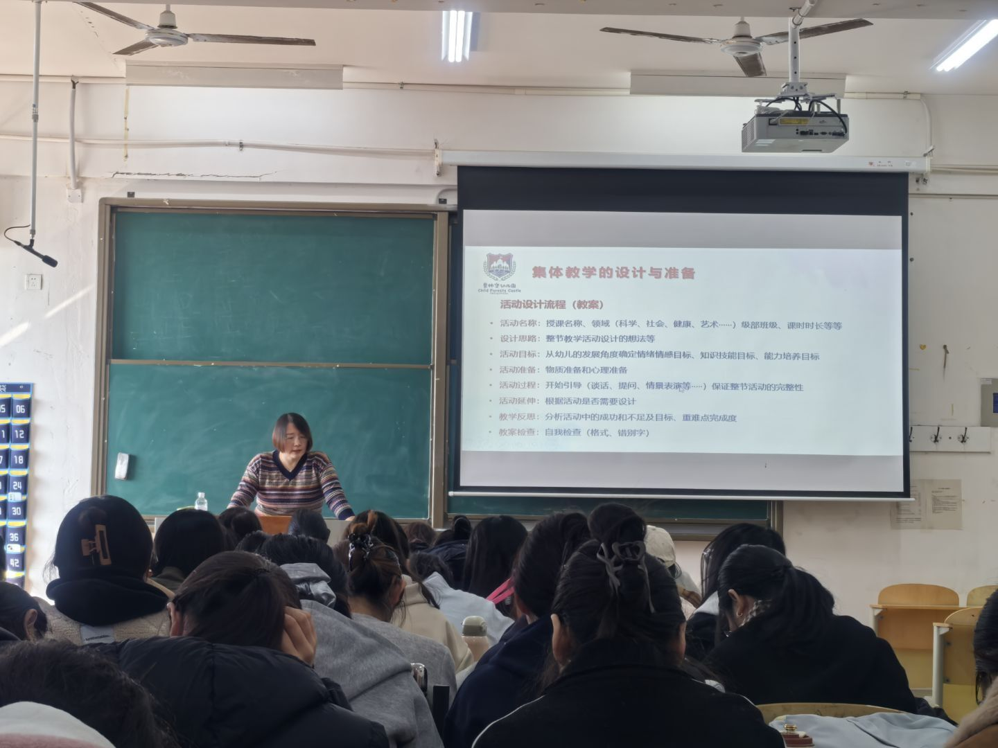 本次讲座聚焦学前教育从业者核心能力培养,以“精准赋能、靶向提升”为目标,设置六大主题模块层层递进。在“做四有好老师”模块,专家们结合教育初心与职业坚守,阐释新时代幼儿教师的责任与担当,强调“有理想信念、有道德情操、有扎实学识、有仁爱之心”是幼教工作者的立身之本;“幼儿园教师班级管理能力”模块中,以班级日常管理案例为切入点,分享幼儿行为引导、班级常规建立、突发问题处置的实用技巧,拆解“以幼儿为中心”的管理逻辑;“谈专业发展”模块里,主讲人结合自身成长经历,为学生梳理职业发展路径,建议从理论学习、实践积累、反思提升三个维度夯实专业根基;“教学设计研讨”模块聚焦活动设计的科学性与趣味性,详解主题活动、区域活动的设计思路,强调要立足幼儿年龄特点与发展需求,让教学设计兼具教育性与游戏化;“课堂教学观察评议”与“主题班会评议”模块则通过模拟教学点评、真实案例剖析,引导学生学会从教学目标、互动效果、幼儿参与度等维度进行专业评议,提升教学反思与评价能力。