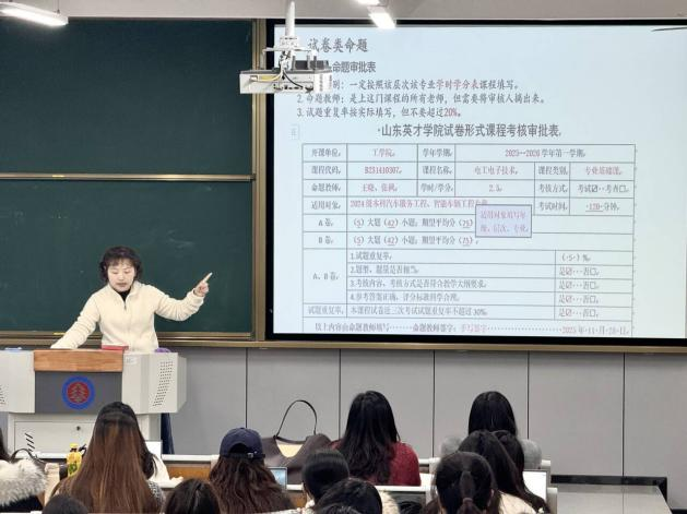 会议最后,任姗院长在总结讲话中强调,命题工作是检验教学成效、评价学生学业水平的重要标尺,直接关系到人才培养质量与教育公平。她对全体教师提出三点要求:一是强化责任意识,以高度的使命感对待命题工作,严守命题纪律与保密规定;二是严守规范底线,严格依据教学大纲与专业培养目标,确保命题的科学性、规范性与导向性;三是坚持持续改进,以此次培训为契机,主动对标整改要求,不断提升命题专业化水平。一份高质量的试卷不仅是检验学生学习成果的工具,更是引导学生学习方向、反映教学改革成效的重要载体。学院将进一步完善命题审核与质量抽查机制,以严标准、实举措推动命题工作提质增效。