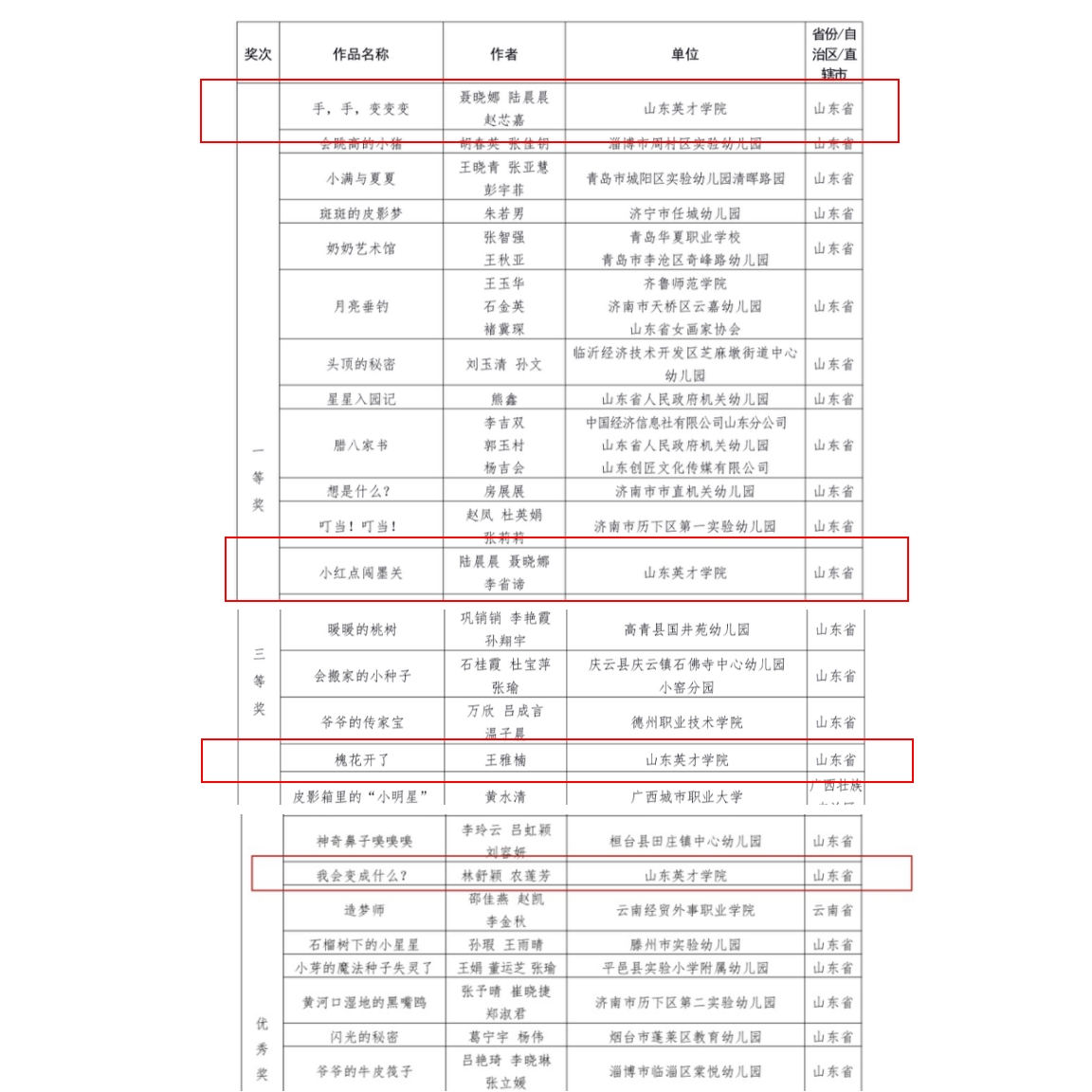 这些荣誉的取得是师生们深耕专业、用心创作的成果,充分展现了我院扎实的教学实力与创新活力。愿大家再接再厉,在艺术创作之路上续写精彩!在接下来的工作中,我院也将借绘本之力,深化专业特色,继续共筑幼儿成长之梦。