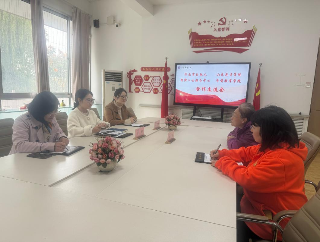 为拓展学前教育专业边界,深化应用型人才培养,2025年10月23日,山东英才学院学前教育学院与济南市乐橄儿智障服务中心在学院会议室举行合作洽谈会。学前教育学院教学副院长任姗、基础理论教研室主任庄军红、实践技能教研室骨干教师杨春凤,与济南市乐橄儿智障服务中心院长张艾玲共同出席了会议。双方经过深入务实的交流,在共建实践基地、课程开发与志愿服务等领域达成多项共识。