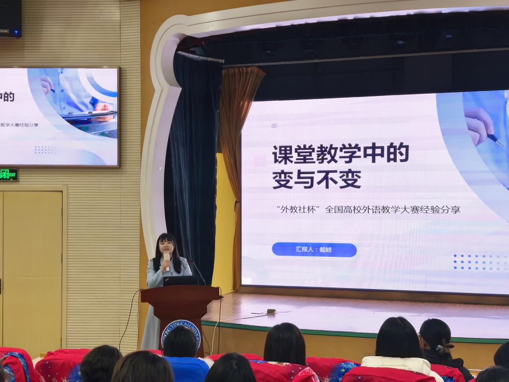 为提升我系教师教学竞赛能力,进一步把握外语教学前沿理念与备赛策略,12月11日中午,人文系在学前小剧场举办“课堂教学中的变与不变——‘外教社杯’全国高校外语教学大赛经验解读及参赛指导”专题讲座。讲座特邀2025年“外教社杯”全国高校外语教学大赛省赛一等奖获得者、山东农业工程学院戴岐老师担任主讲,由人文系主任李媛主持。人文系全体教师及通识教育学院公共外语教研室教师共同参加。