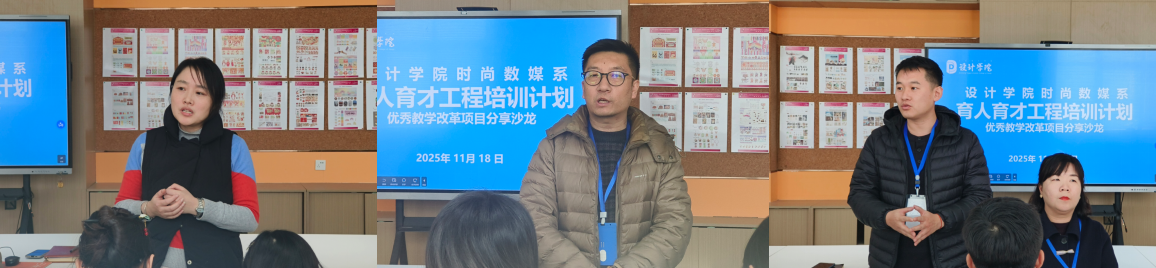 为深化教学改革,推进课程思政建设,提升教师育人育才能力,设计学院督导组于2025年11月18日,设计学院教学楼107举办“育人育才”培训工程之优秀教学改革项目分享沙龙。时尚数媒系全体教师参与,学院督导组组长李俊峰及四位督导全程参会指导。