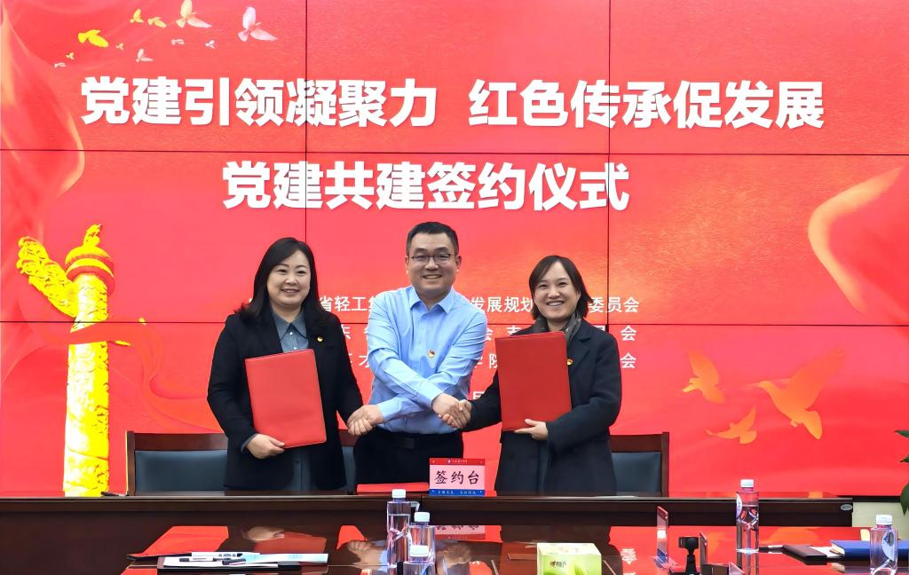 2025年11月21日,中共山东英才学院设计学院总支部委员会牵头,与中共山东省轻工集体企业联社发展规划部支部委员会、中共山东省装饰协会支部委员会联合开展“党建引领凝聚力 红色传承促发展”党建共建系列活动,签约并揭牌成立党建共建单位,奏响校地(企)合作新乐章。