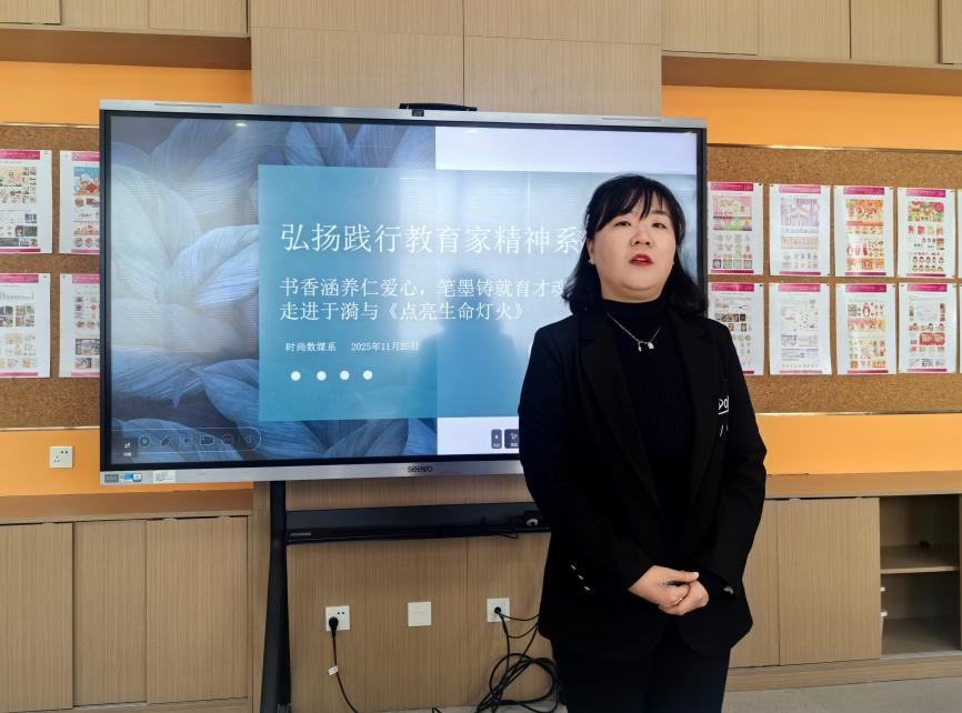 2025年12月2日上午,山东英才学院设计学院成功举办第五次“弘扬践行教育家精神”系列活动。此次活动以“书香涵养仁爱心,笔墨铸就育才魂”为主题,通过深度研读人民教育家于漪著作《点亮生命灯火》,引领全系教师感悟教育初心,筑牢立德树人思想根基。活动由时尚数媒系主任李俊峰主持,青年教师李佳琪担任主讲,部分无课教师全程参与。