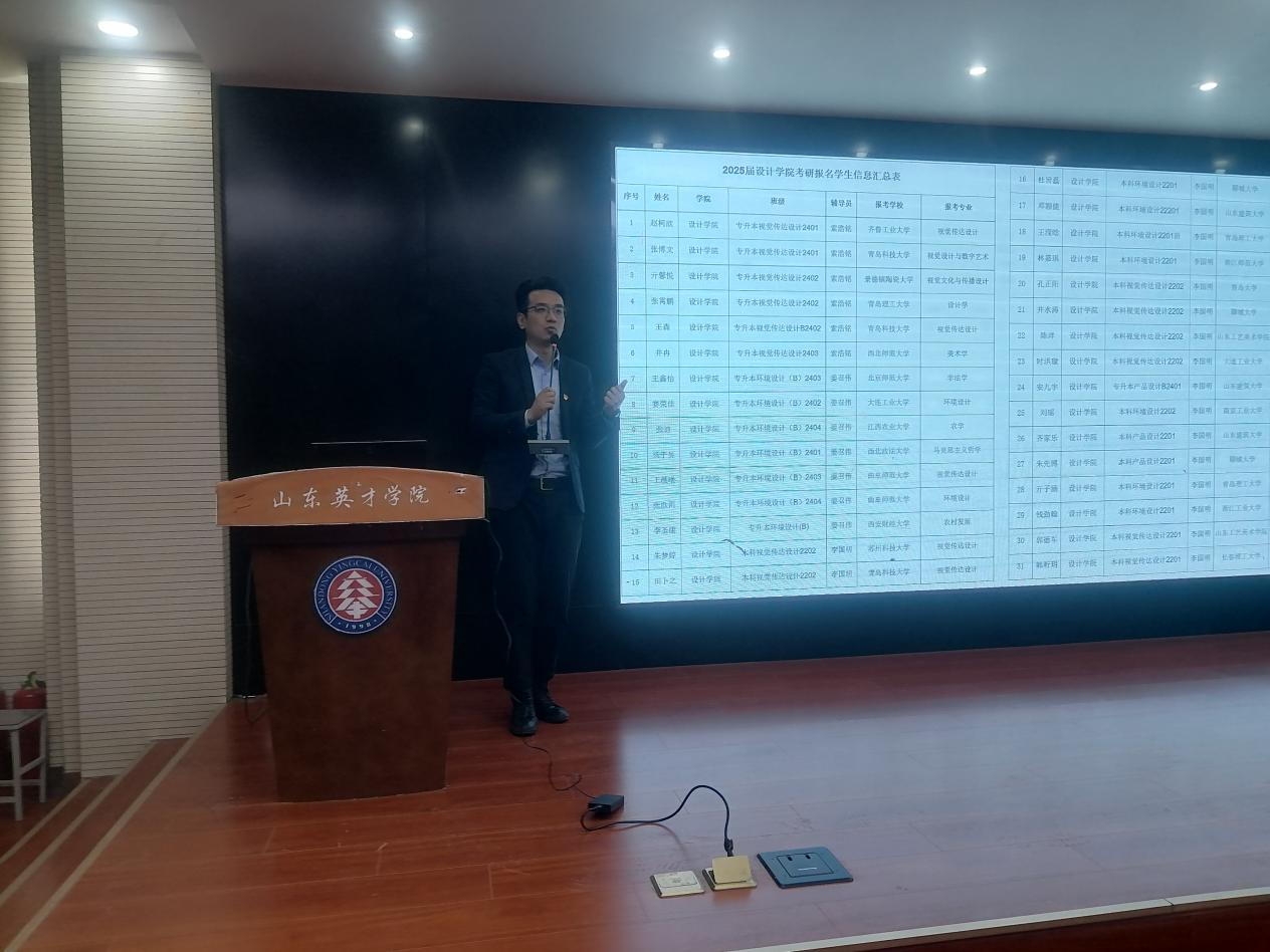 2026年全国硕士研究生招生考试即将到来,设计学院聚焦“精准赋能教师、暖心关怀学生” 双目标,同步推进关键工作。12月16日,设计学院召开2026届考研专项指导会,设计学院院长郝莹、副院长尚宪福、副书记尚再斐及全体考研指导教师参会,围绕“指导策略、应急处理、资源保障” 部署工作。