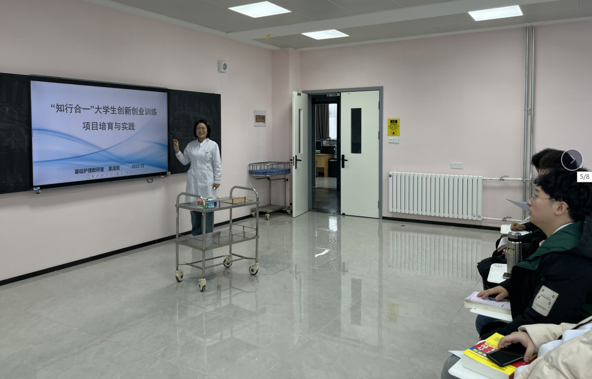 2023年12月11日,医学院基础护理教研室主任夏淑娟老师为2023级专升本护理学的同学进行了一场关于大学生创新创业训练项目培育与实践的专题报告,旨在提升学生对大学生创新创业训练项目的认知与理解,为同学们开展大学生创新创业训练项目提供有效帮助。