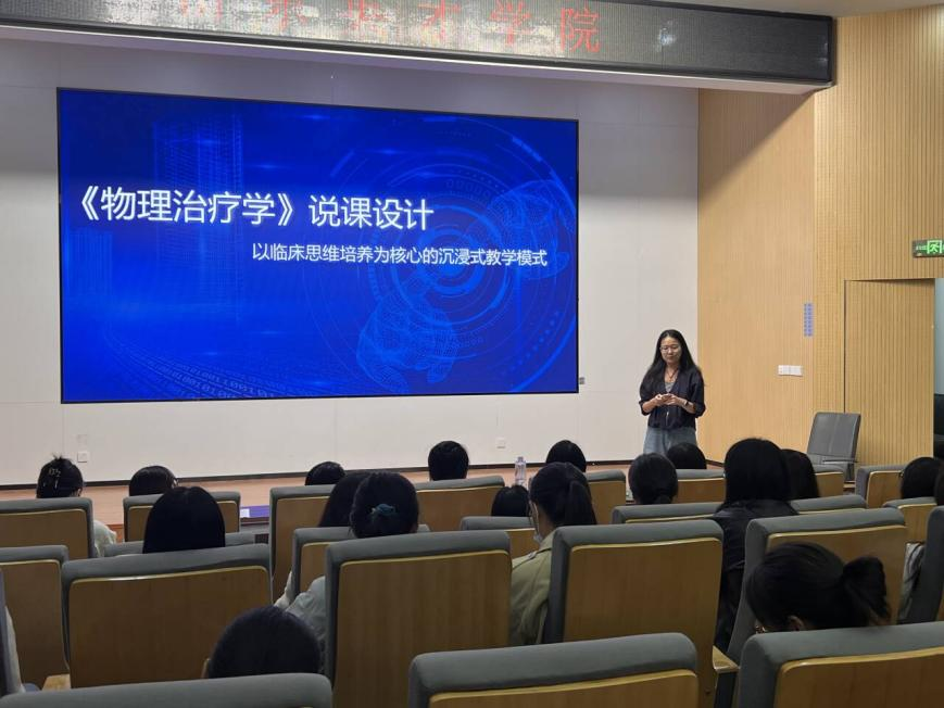 培训现场,杨思凡老师以《物理治疗学》说课设计为例,围绕“以临床思维培养为核心的沉浸式教学模式”展开分享。课程导入环节,她强调要用临床真实案例或前沿医学现象设计开端,快速抓住学生注意力、激发专业兴趣。