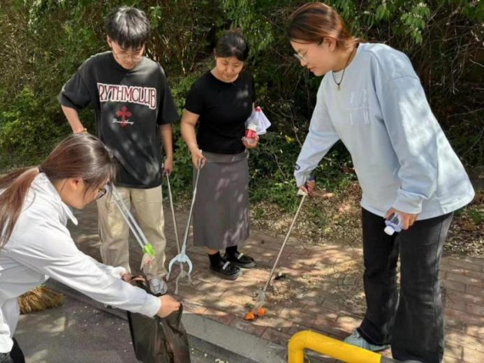 随着一片片落叶和垃圾的清理,社区的环境变得更加整洁美丽。志愿者们还和日常工作人员进行了交谈了解情况,比如平时是如何打扫如何处置最后清扫完的垃圾,以及清扫完之后将垃圾和落叶如何处置的问题。