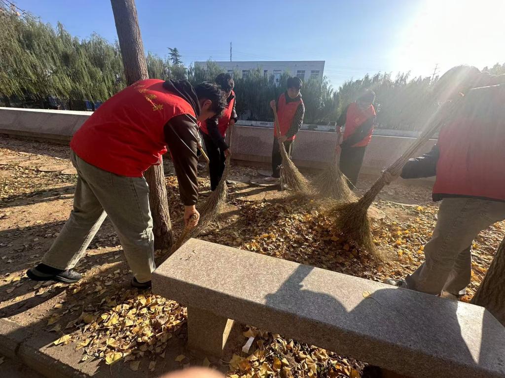 他们身穿红色马甲积极投入到劳动实践活动当中,同学们拿着清洁工具仔细清扫着道路中积聚的杂物,将隐藏在绿化带墙角的垃圾斗清理干净,装进垃圾袋中。