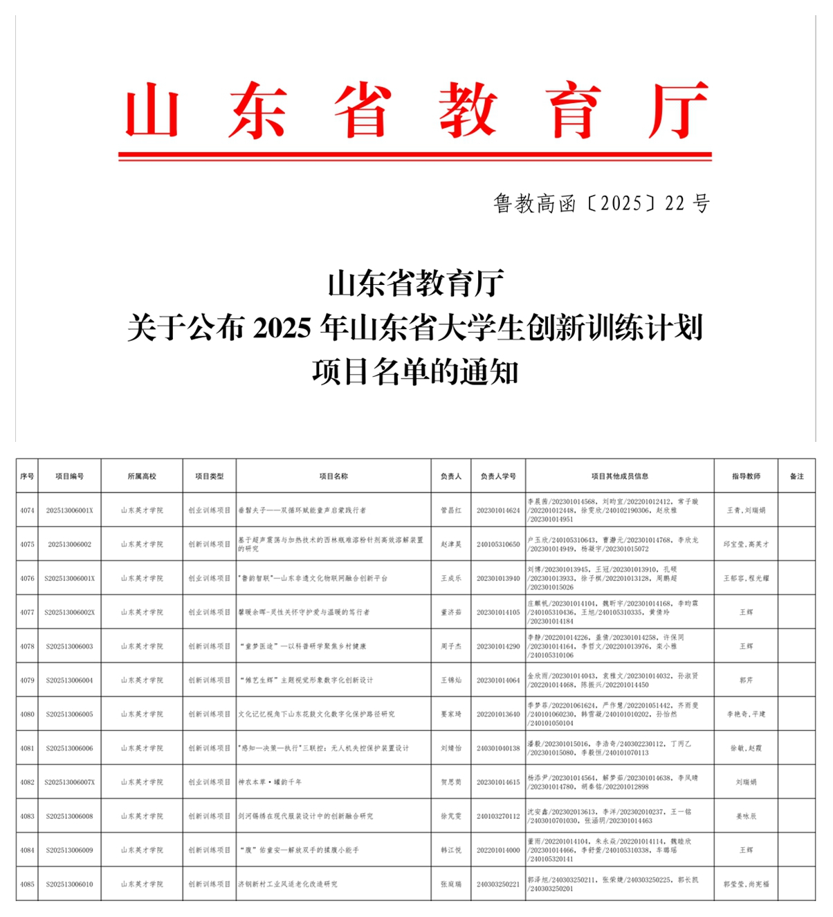 山东英才学院2025年大学生创新训练计划项目省级以上立项名单
