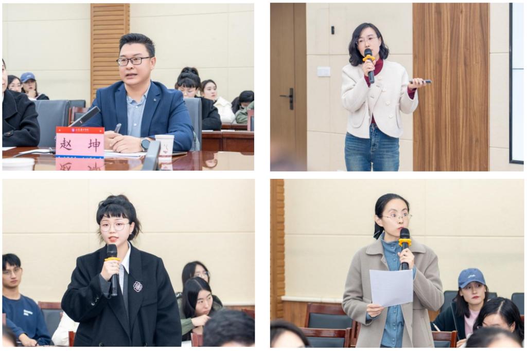 学校领导、学生工作处、教务处、科研处、通识教育学院结合工作实际,提出与创新创业工作融合建议。校长助理张瑞君表示要搭建起常态化的师生双向互动机制,主动公开导师库,设立学生“竞赛之星”等有效举措,营造浓厚的双创氛围;教务处重点推进青年教师培养,打造专创融合特色课程;科研处着力推动师生科研成果向双创项目转化;通识教育学院强化创新创业师资专项培育,列出优秀项目清单,备战2026年双创大赛。