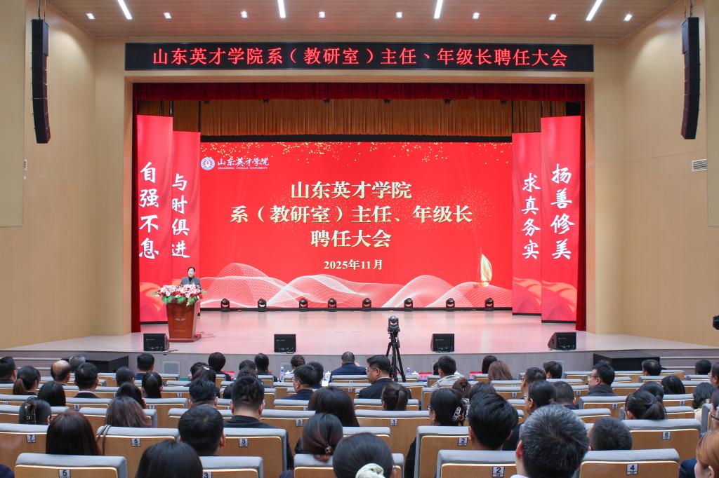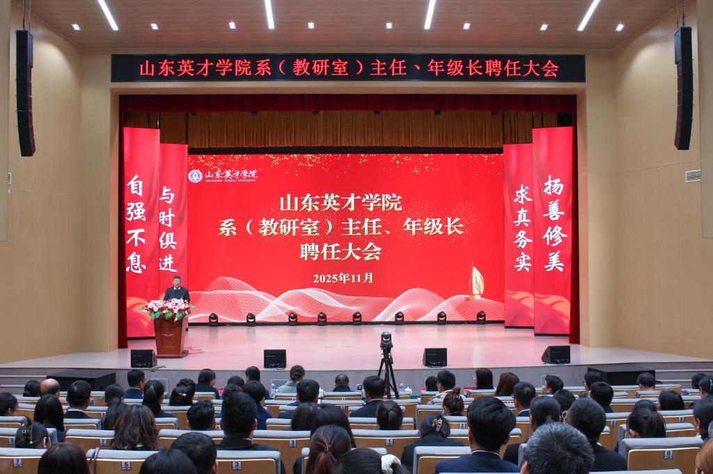 为深入贯彻落实立德树人根本任务,全面加强学校基层管理队伍建设,激发办学活力,推动学校高质量内涵式发展,11月18日,学校在音乐厅隆重举行系(教研室)主任、年级长聘任大会。顾问校长张星臣,执行校长、党委副书记王晓娜,副校长崔奎勇,党委副书记、工会主席孙玉香,纪委书记、副校长李晓玲,副校长孙文红,校长助理张瑞君出席大会,各学院院长、副院长、党总支副书记及全体教职工齐聚一堂,共同见证这一重要时刻。大会由副校长崔奎勇主持。
