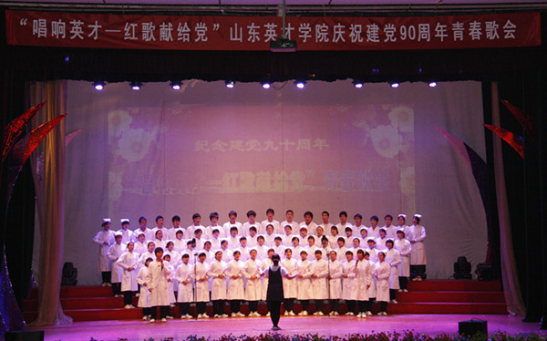 为庆祝中国共产党成立90周年,激励广大青年紧密团结在以胡锦涛同志为总书记的党中央周围,2011年5月4日,山东英才学院“‘唱响英才——红歌献给党’青春歌会”在大学生活动中心隆重举行。莅临本次歌会的领导有机械学院副院长孔祥泉,计算机学院副院长杨庆年,商学院副院长侯礼鹏,院团委书记龙新良、副书记王东生以及各二级学院基层团委书记。