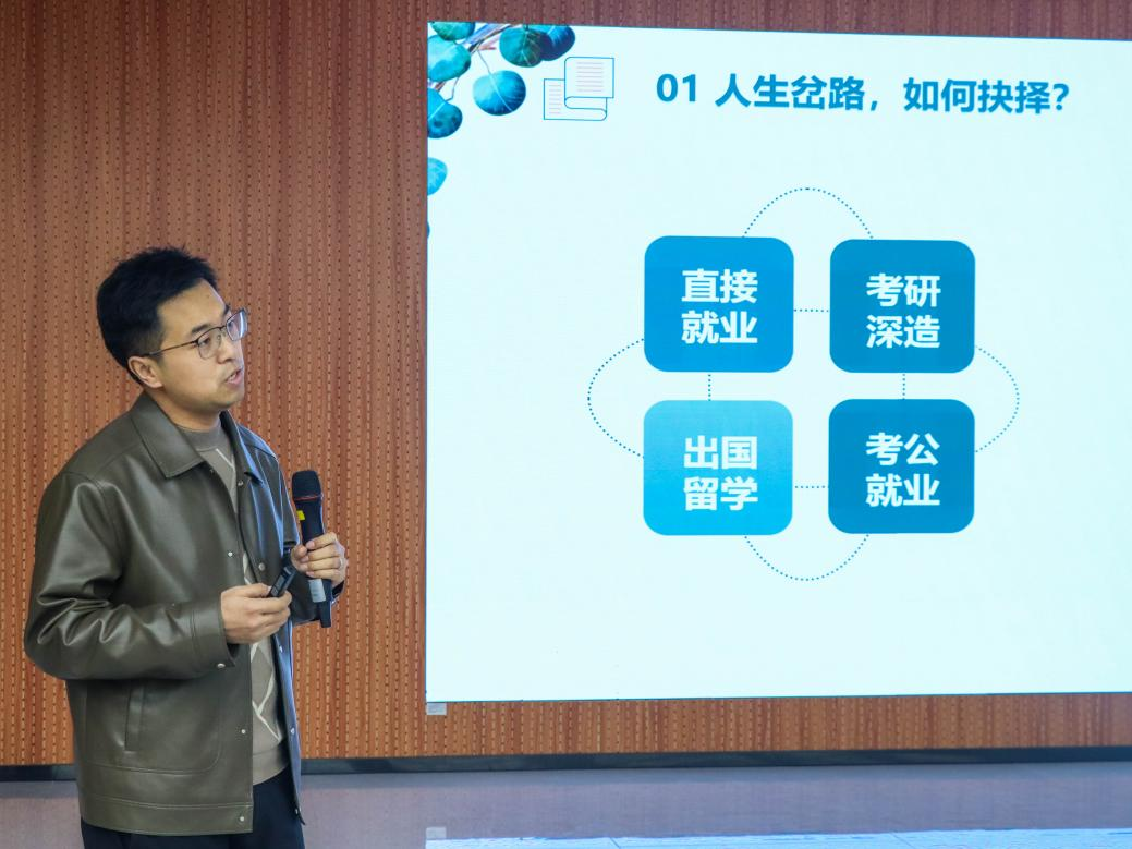 11月13日,学院邀请学府教育资深讲师开展综合升学指导讲座。讲师围绕“就业、考研、留学、考公”四大毕业发展方向,结合详实数据,分析了近年考研报录比、考公竞争情况、留学申请要点及就业市场趋势,助力学生在多元选择中形成系统认知与理性规划。系列活动覆盖不同学生群体,现场座无虚席,互动积极。参与学生普遍反映,活动内容实用、指导性强,有效缓解了升学路上的迷茫与焦虑。