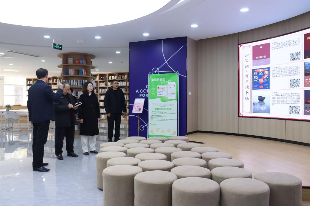 张伟馆长一行实地参观了我馆党建与思政教育基地、开放阅览室、资源检索区、智慧听书区、休闲阅读区等核心功能区域。对我馆合理的空间布局、现代化的设施配置、科学的资源组织模式以及智慧化服务系统的流畅运行表现出浓厚兴趣,并进行了详细了解。