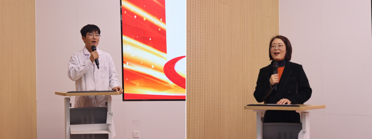 校团委韩国庆老师率先上台,郑重宣读“生命方舟”南丁格尔救护服务队成立批复,标志着服务队正式步入规范化发展新阶段,为校园及社会救护志愿服务注入新活力。随后,生命与健康科技志愿服务团队创始导师王辉以“以爱赋能,以技传薪”为核心,生动讲述了团队从筹备到组建的点滴过往,展现了全体成员对救护事业的热忱与坚守。服务队队长赵海威全面介绍了社团未来发展与计划,指导老师夏淑娟也对服务队成员提出了殷切期望,她勉励大家牢记“以技为舟,载爱远航”的理念,扎实提升救护技能,以专业素养践行志愿服务精神,用爱心与责任守护生命防线。